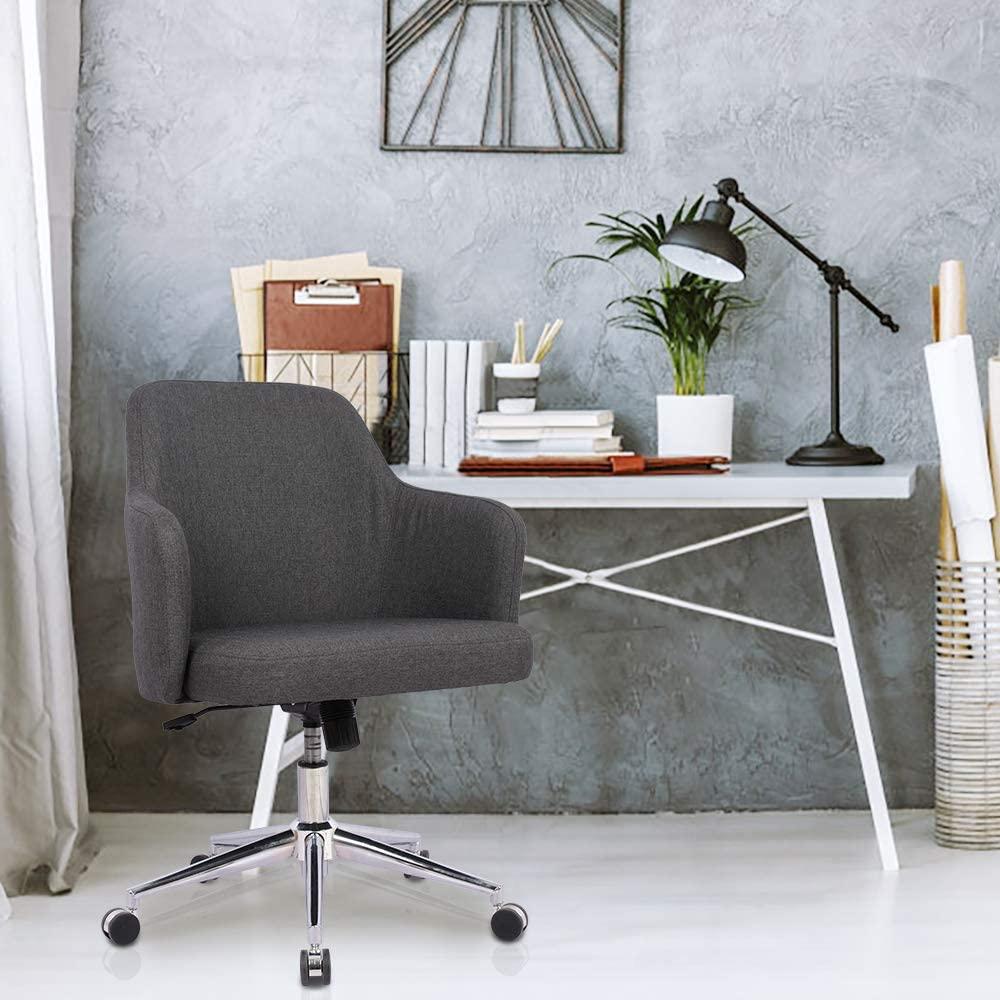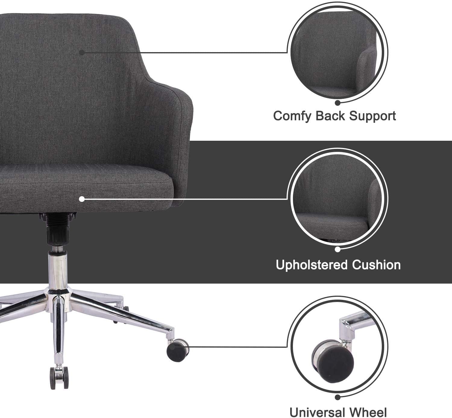 Home Office Chair Upholstered Mid Back Support Swivel Computer Desk Task Chairs Adjustable Height with Armrests
