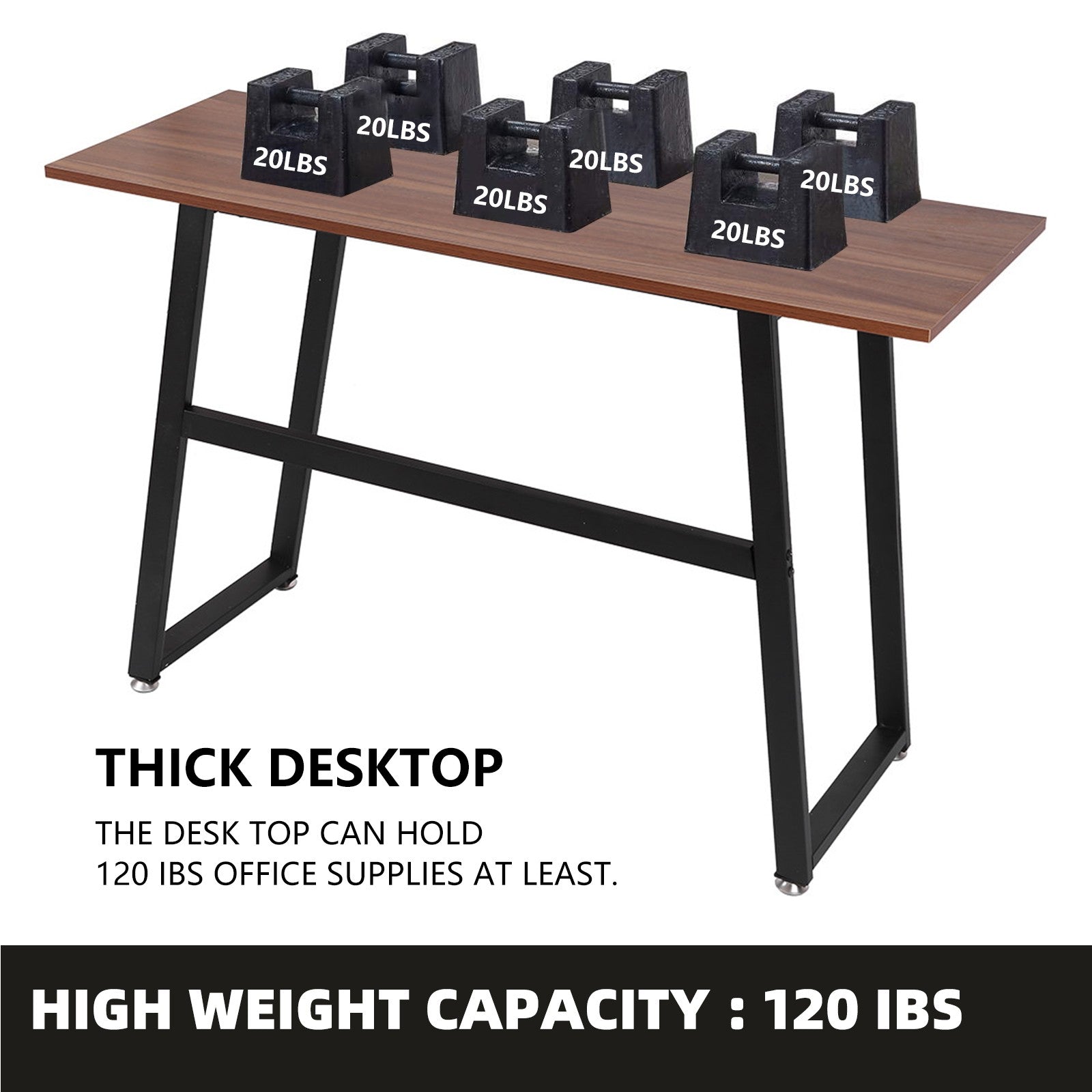 Sturdy and Durable: High-quality MDF and metal frame legs make this industrial desk super sturdy. This desk can hold 280 pounds. The anti-slip pad on the bottom enhances stability and balance.