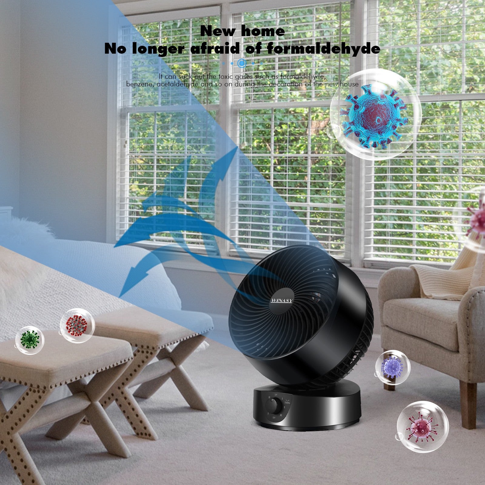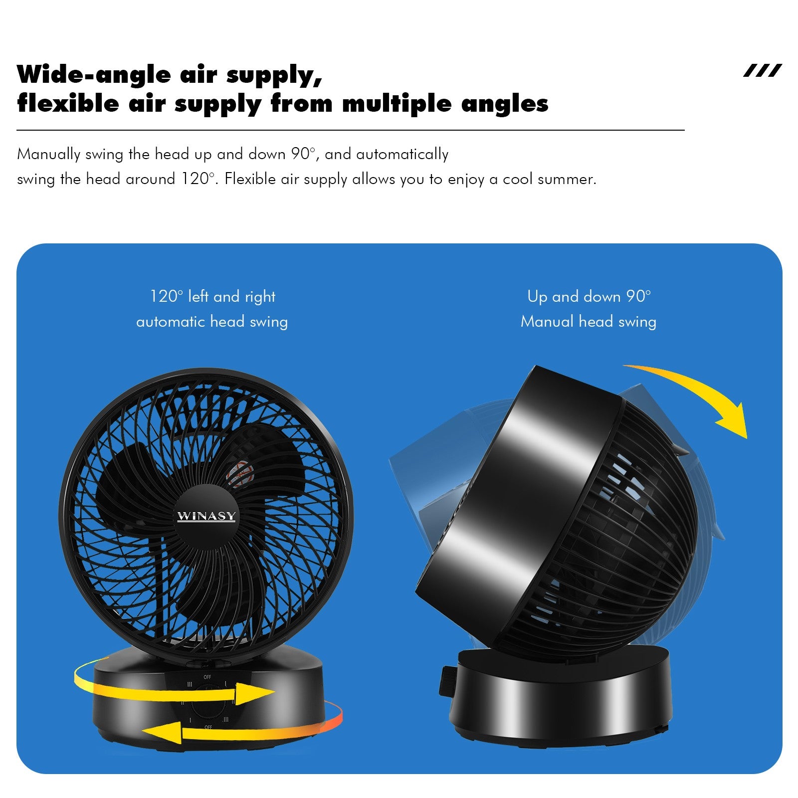 Air Circulation Fan: Fully automatic wide-angle head shaking design, adjustable by 90° left and right, 80° up and down, wider air supply angle, faster circulation, suitable for all seasons. It is used with air conditioners, electric heaters and other household appliances to balance indoor temperature and improve comfort.