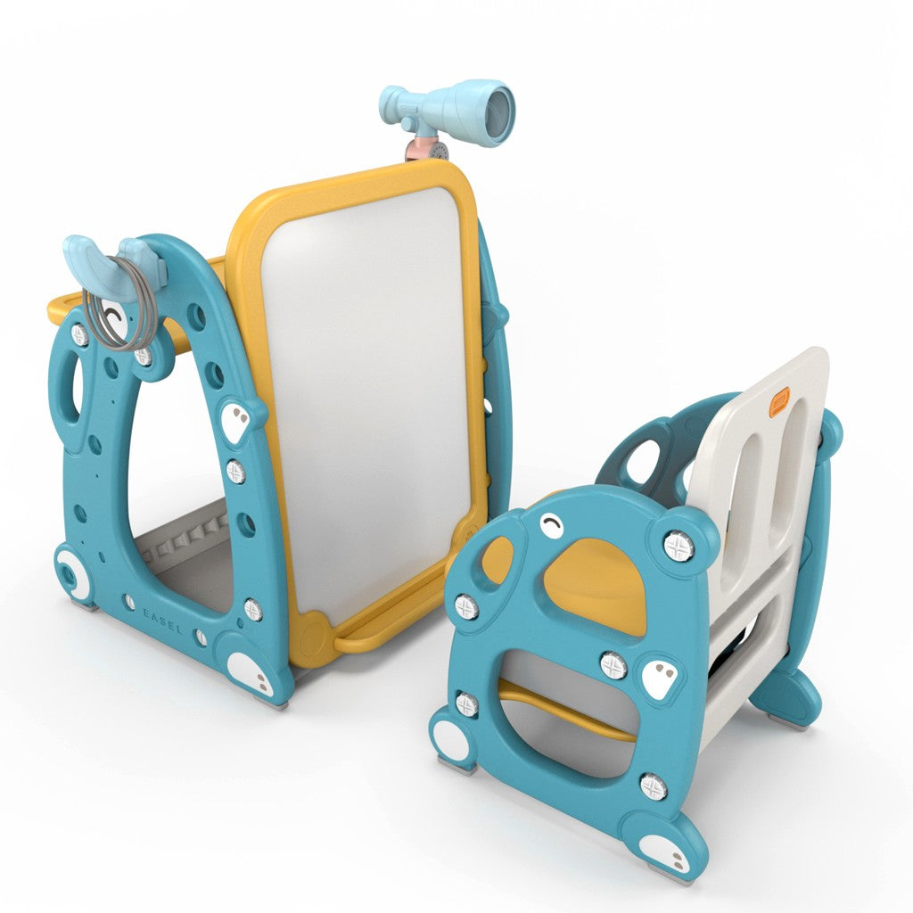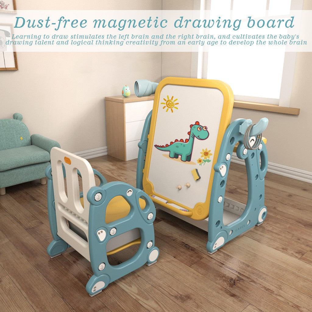 Kids Easel Play Station With desk,Storage basket,Drawing Board And Chair