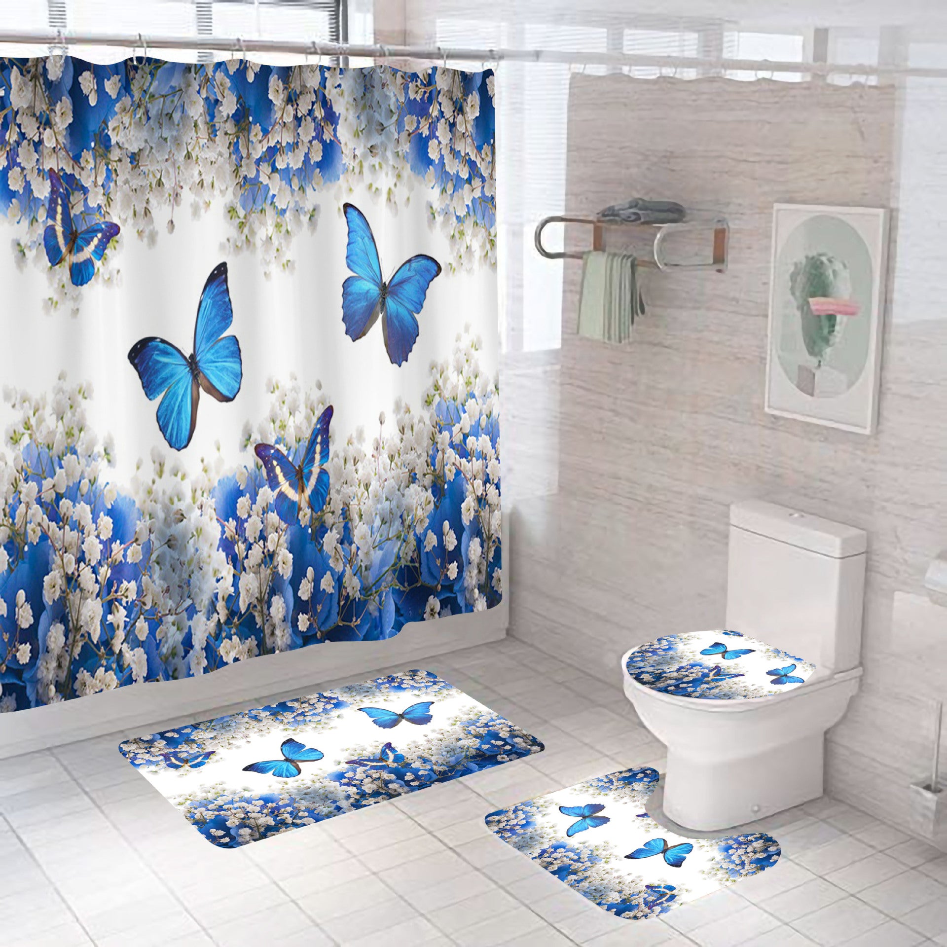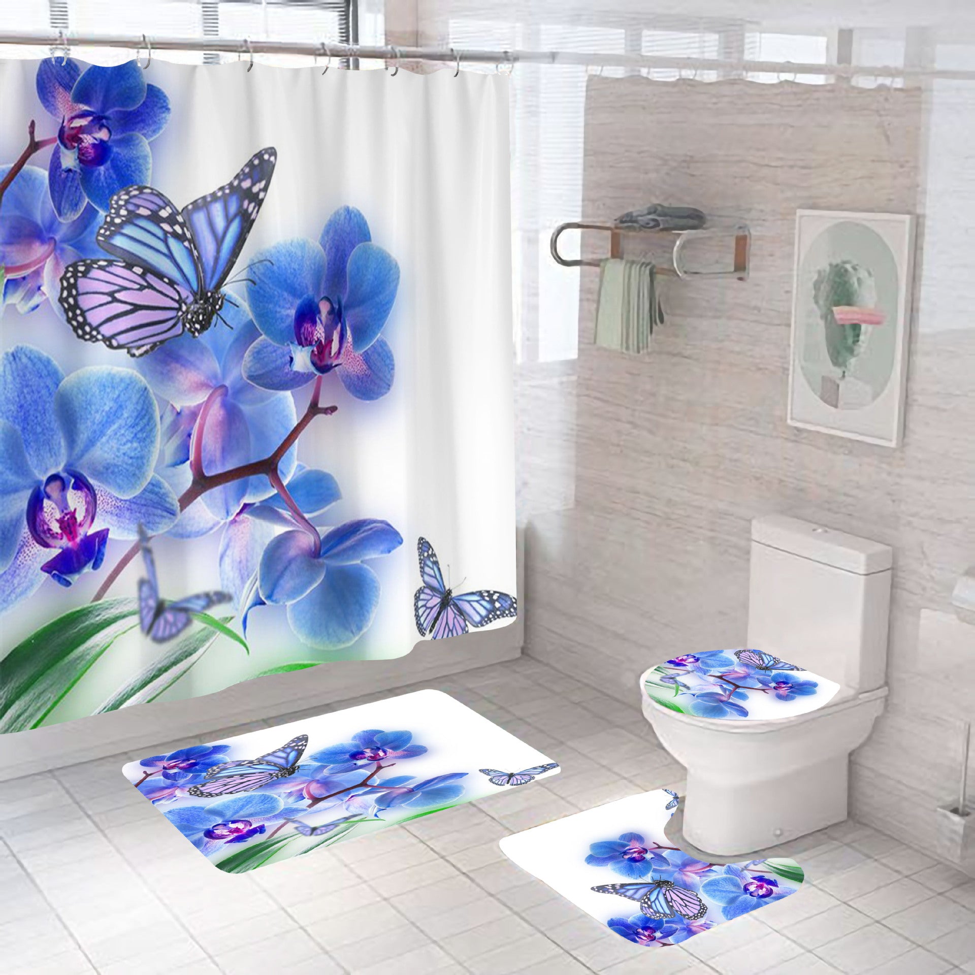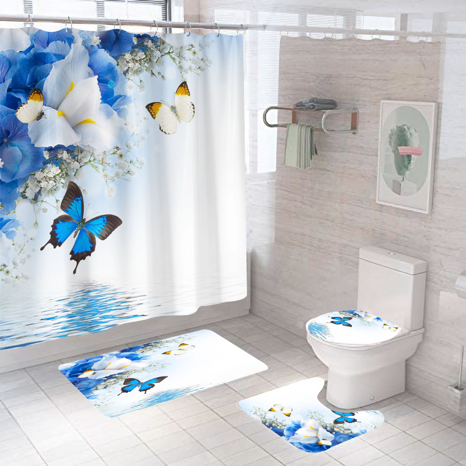 Four-piece suit (180*180 shower curtain+toilet cover+u-shaped mat+floor mat)