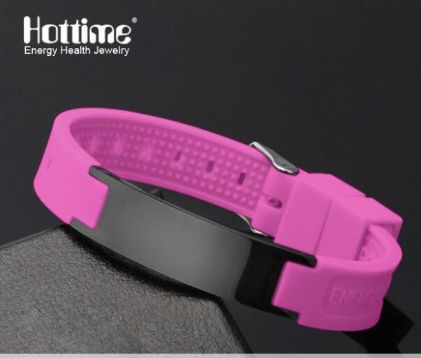 Hottime 4 in 1 Bio Elements Energy Silicon Sport Bracelet Bangle Multicolor Power Bands Balance Stainless Steel Metal Bracelets