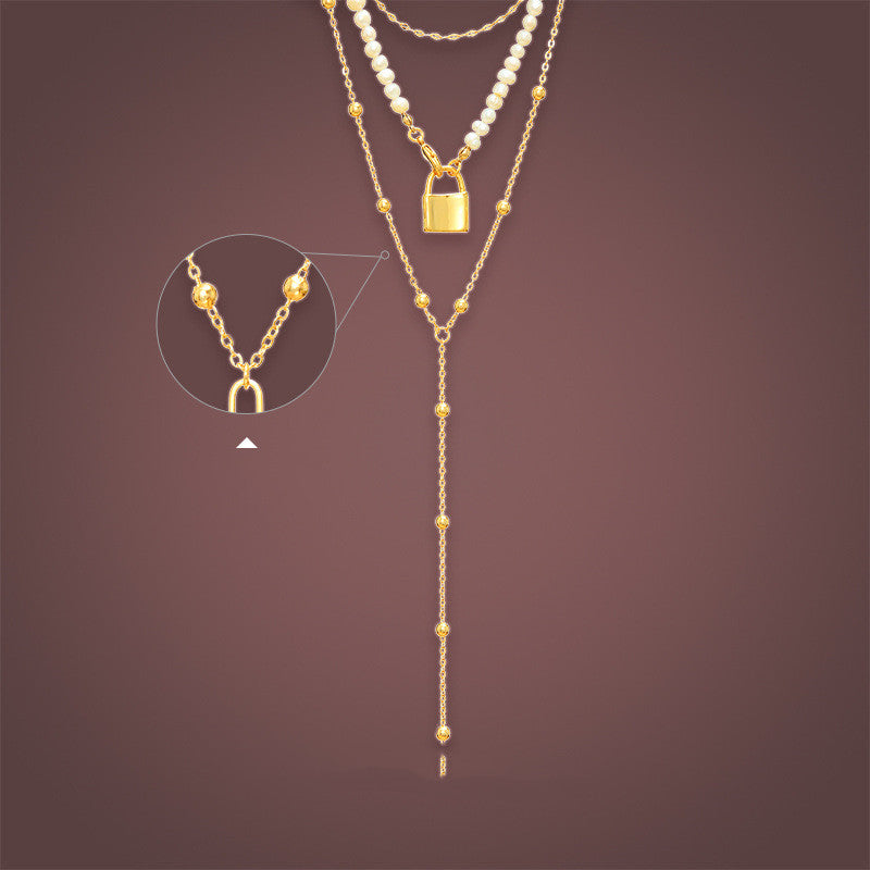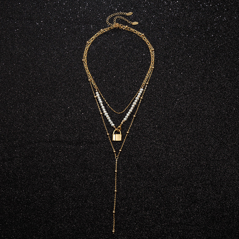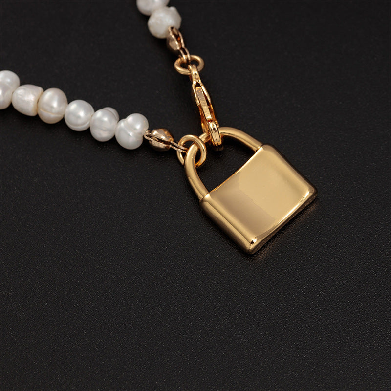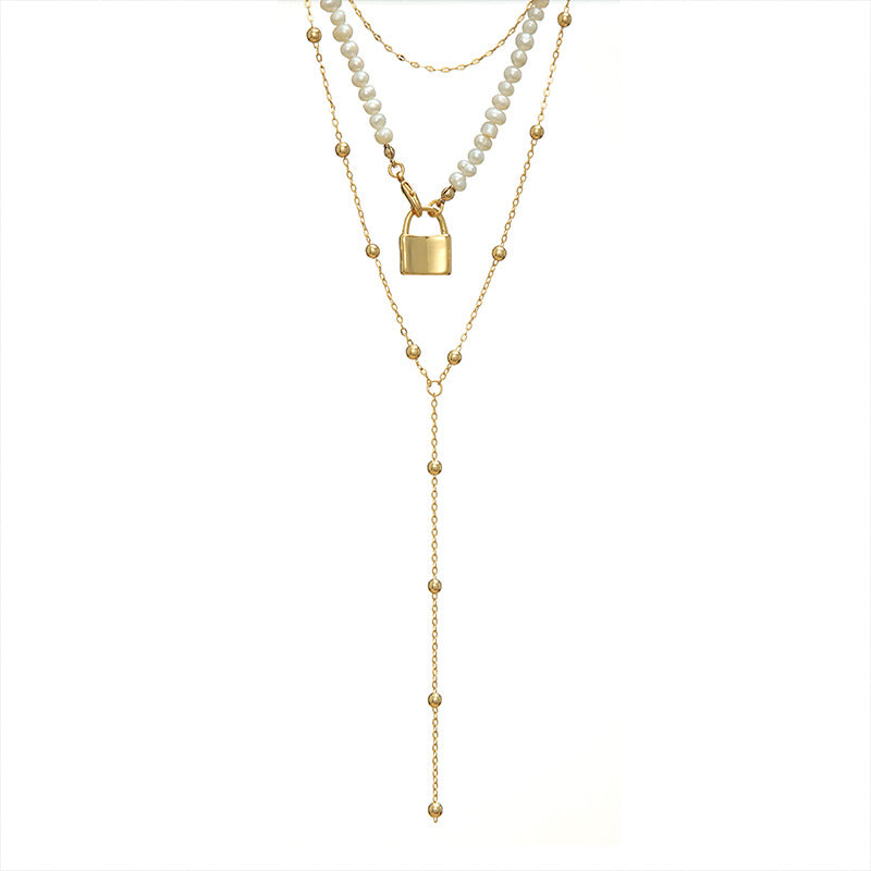 Snake Bone Golden Geometric Bead Pearl Necklace