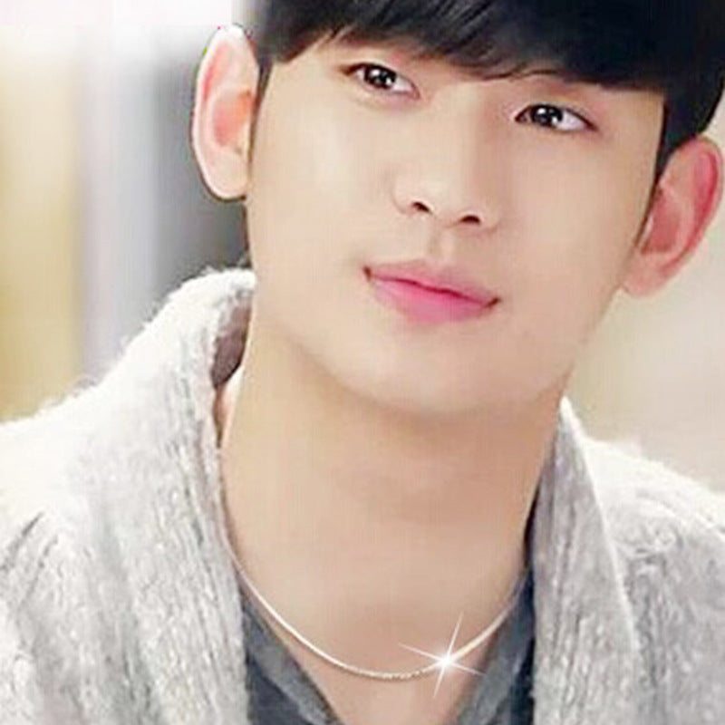 Sterling Silver Plated platinum necklace chain jadoku men clavicle silver chain Korean fashion collar men and women lovers of silver